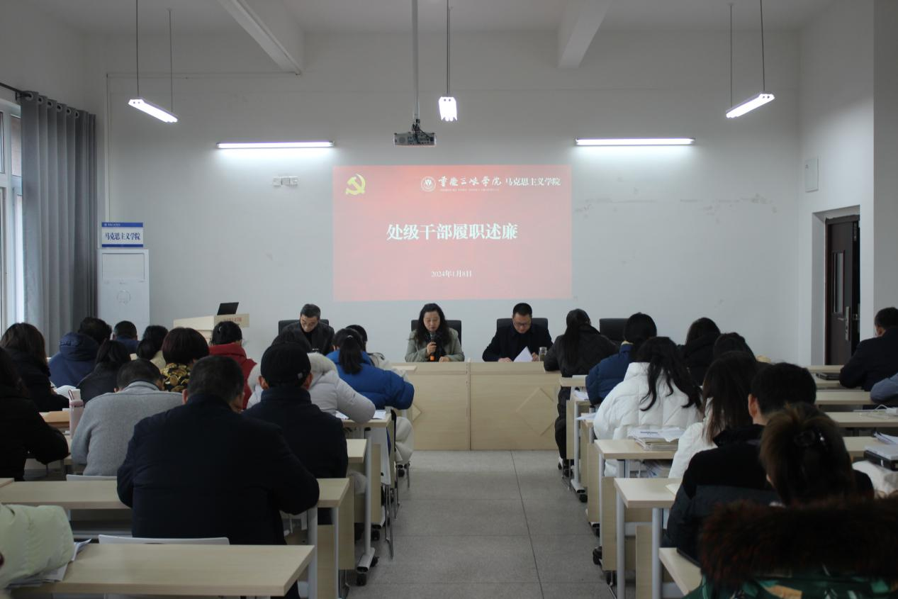 1月8日下午,我院在博学楼3栋424会议室召开处级干部履职述廉会议,全体教职工参会,会议由党总支书记兼副院长秦勤主持。