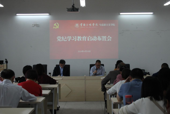4月18日,我院在博学楼3栋424会议室开展第4期政治理论学习暨党纪学习教育启动布置会,院党总支书记兼副院长秦勤主持会议,全体教职工参加会议。