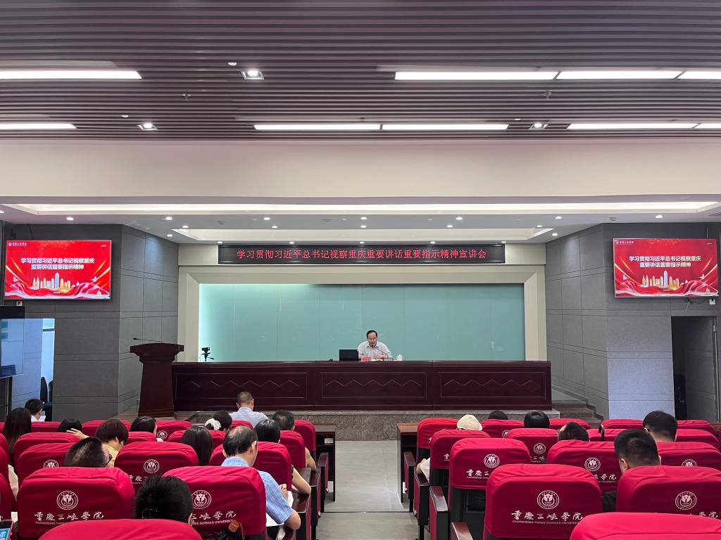 会上,李廷勇对习近平总书记视察重庆重要讲话重要指示精神进行了深入宣讲,并对市委有关工作要求进行了传达。李廷勇强调,要深刻理解习近平总书记赋予重庆新的时代使命和战略定位,全面贯彻落实习近平总书记重要讲话重要指示精神,找准三峡学院发展方位,谋划工作抓手,以感恩之心、奋进之志,积极推动学校实现高质量发展。