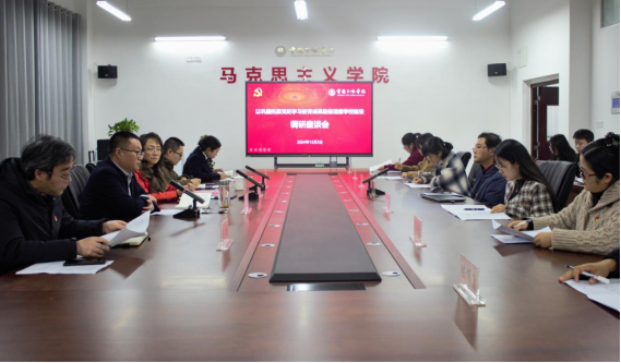 代远红对我院相关工作给予充分肯定。她表示,大家的发言都很好,收获很大,调研座谈达到了预期目的,取得了良好效果。她指出,此次调研目的是深入贯彻习近平总书记在党的二十届三中全会上的重要讲话精神,认真落实二十届中央纪委三次全会和市委六届六次全会的工作部署以及市纪委、学校党委关于加强调研工作的要求,以巩固拓展党纪学习教育成果助推清廉学校建设,以发现问题、解决问题为导向,查看基层党组织实情,以学校当前重点工作为抓手,提升学校高质量发展。她强调,马院姓马,在马言马,要坚持党的领导和创新理念,发挥好思政课堂主渠道重要作用,要切实加强思政教师队伍建设和师德师风建设,让“有信仰的人讲信仰”,把有意义的事情讲得有意思。