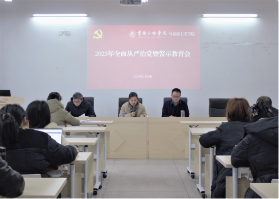 1月9日下午,我院在博学楼3栋424会议室召开2025年全面从严治党暨警示教育会。学院党总支书记兼副院长秦勤主持会议,全体教职工参会。