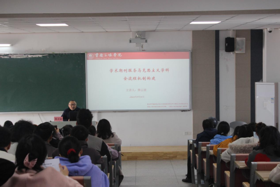 2023年3月14日下午,《西南大学学报(社会科学版)》编辑部主任、编审韩云波教授应邀为我院师生作“学术期刊服务马克思主义理论学科流程机制建构”专题学术报告。本次报告由太阳集团tcy8722院长徐承英主持,《太阳集团tcy8722学报》编辑部主任马兵、太阳集团tcy8722党总支书记秦勤、副院长任鹏及我院百余名师生参加。