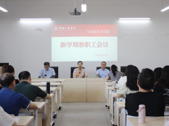 9月1日上午,我院在博学楼3栋424会议室召开2024年秋季新学期教职工会议。本次会议由学院院长兼党总支副书记徐承英主持,全体教职工参加会议。