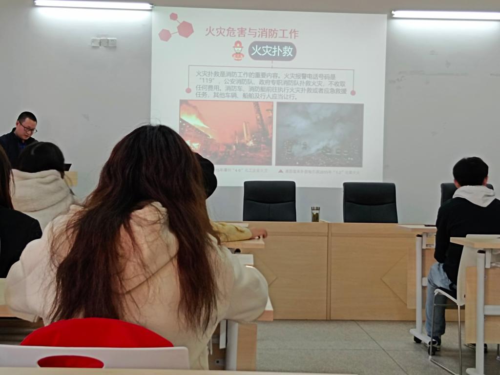 座谈会后,秦勤为同学们进行了消防安全宣传教育专题辅导。秦勤从火灾危害与消防工作、学校火灾及预防、消防器材设施及使用方法、消防安全指示标志、疏散逃生等方面进行深入讲解,并通过大量案例开展警示教育。秦勤指出,消防安全教育是学生安全素质教育的重要内容,是提升国民安全素质的基础工程。掌握一定的消防知识不仅能给学生人身安全带来保障,也能带动和帮助身边的人增强消防安全意识,提高消防技能,及时消除火灾隐患,维护社会公共消防安全。秦勤希望同学们将安全铭记于心,强化安全知识学习,时时处处做好安全防范,为平安校园建设贡献力量。