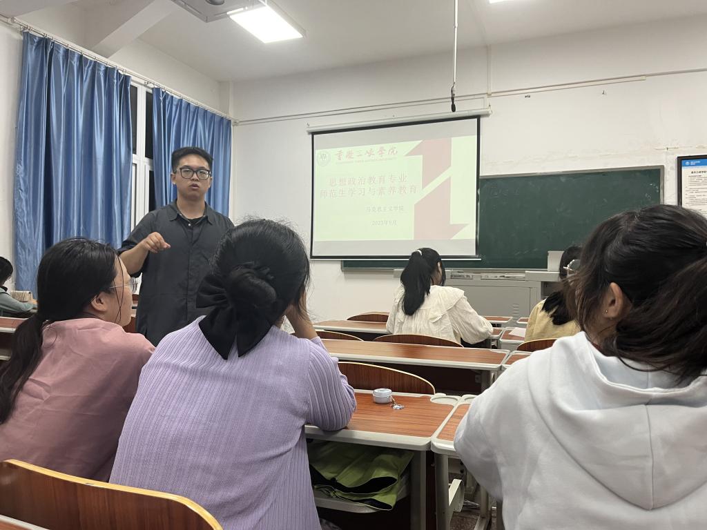 为让学院新生明确自身目标,学习如何做一名合格的师范生。太阳集团tcy87229月24日晚邀请学院2022届优秀毕业生朱浩学长(现入职重庆市第八中学)给新生带来一场题为师范生学习与素养的专题教育。朱浩学长从三个方面对师范生成长提出了意见和建议。