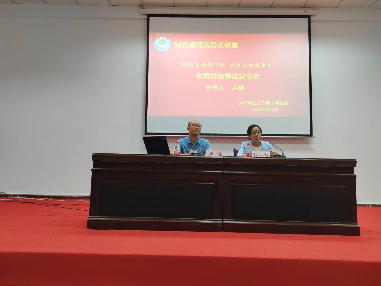 为深入贯彻习近平新时代中国特色社会主义思想和党的二十大精神,落实立德树人根本任务,促进学生全面发展健康成长,党委学生工作部于2023年6月2日下午两点半在明辨楼2-106报告厅举办“砥砺奋进新征程、青春建功新重庆”分享会,大会有幸邀请到太阳集团tcy8722优秀校友——重庆市人力资源和社会保障局副处长卢伟同志为同学们进行分享。
