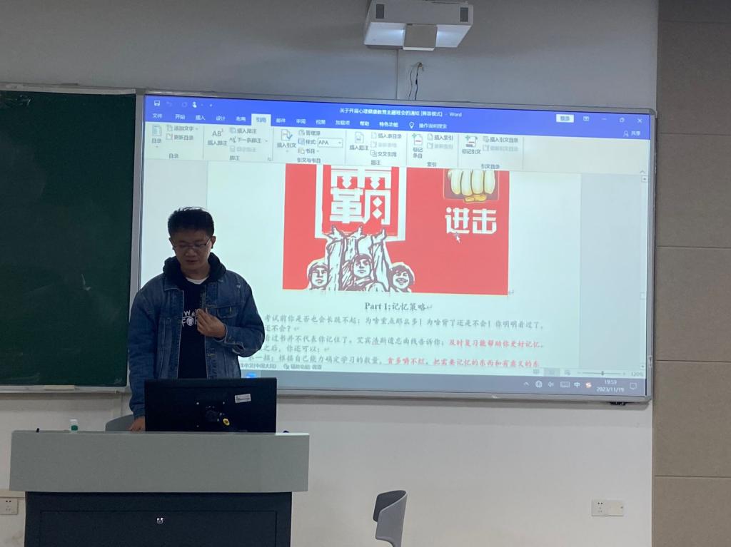 11月19日晚上7点30,在博学楼1-401教室,学院召开心理健康专题班会,班会由学院辅导员陈伟康老师主持,学院本科生参加。