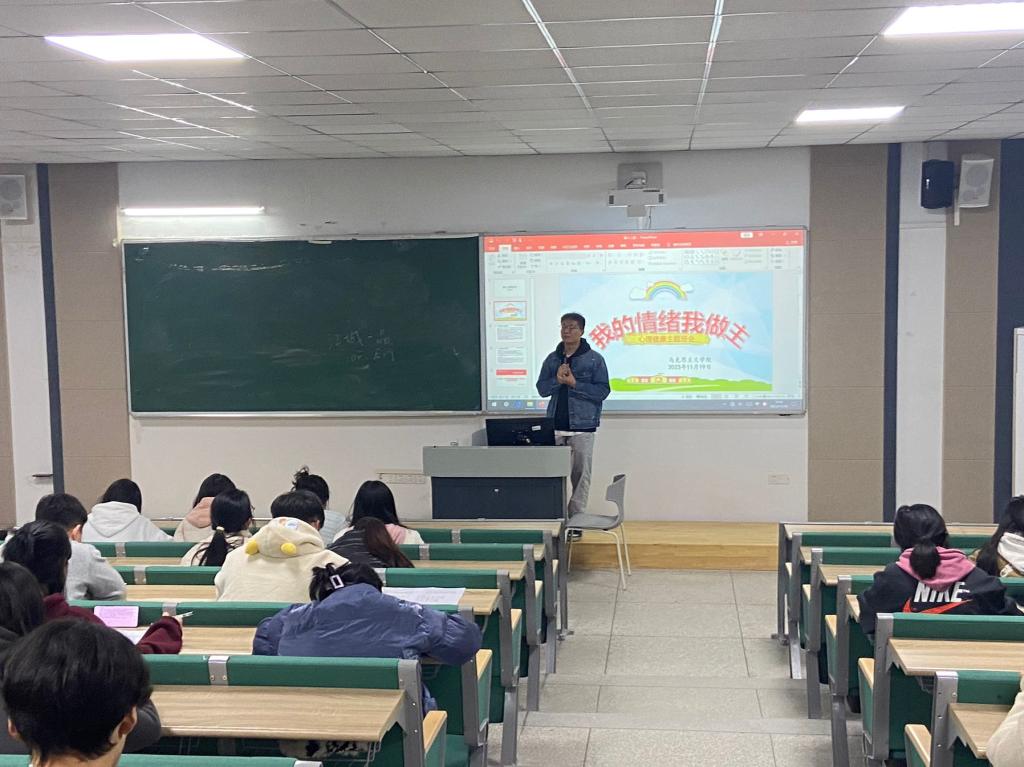 随后,陈老师就大学生的心理相关问题与同学们进行了交流分享,从大学生人际交往、大学生情绪管理、大学生自我认知、大学生学习心理、大学生恋爱心理等几个方面进行了讲解,希望同学们从理论和案例中能够比照自我,对出现的类似问题可以借鉴案例中的方法进行情绪管理,调整心态,以最佳状态面对后续的学习、考研、就业等。