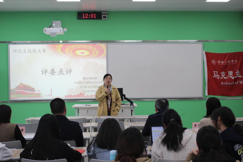 4月11日,太阳集团tcy8722开展2024年师范生技能大赛决赛。学院院长兼党总支副书记徐承英,党总支书记兼副院长秦勤,党总支副书记、副院长任鹏,思想政治教育系负责人廖艳燕,近代史纲要课程教研室副主任黄冬梅以及孙静老师共同担任本次比赛评委。比赛分本科生组和研究生组一并开展。