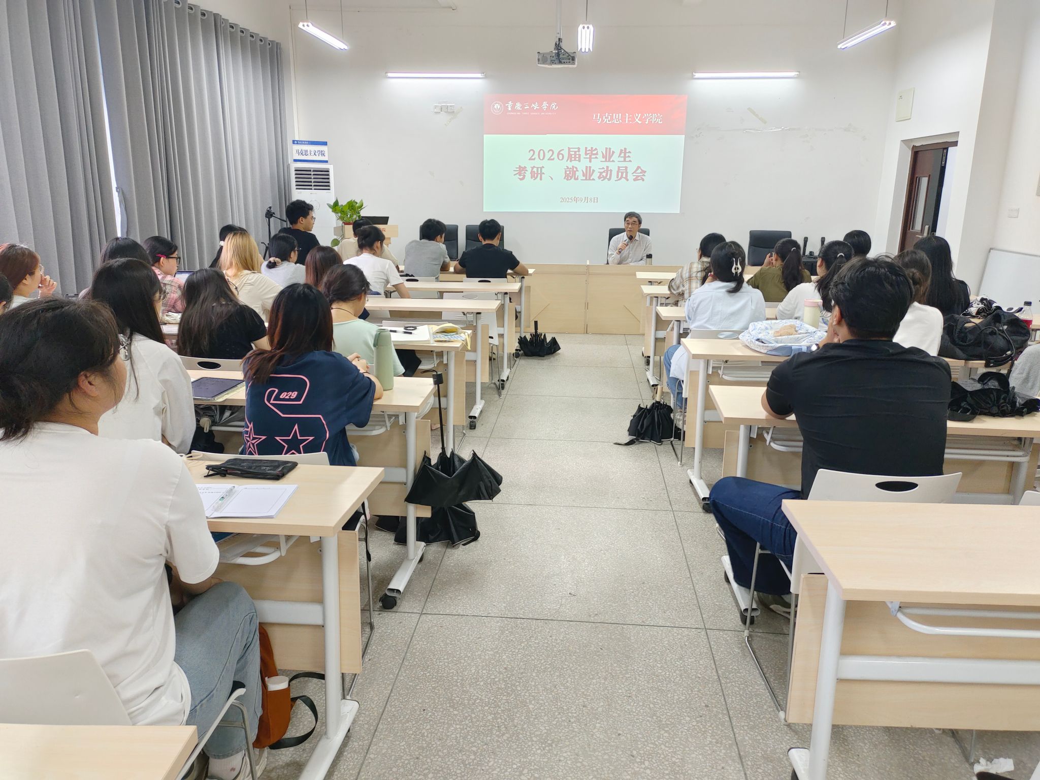 2025年9月8日下午,太阳集团tcy8722在博学楼3-424会议室召开2026届本科毕业生考研、就业动员大会。学院党总支书记、副院长任鹏老师作动员宣讲,2026届全体本科毕业生参加。