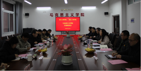 胡守敏介绍了重庆文理学院马院近年来的发展情况,详细介绍了科学研究、人才培养、服务社会等各方面工作取得的成绩、以及学院发展的突出问题。他希望双方进一步加强交流合作,建立院际交流协作机制,常态化开展互访,共同交流学习。李景国着重介绍了思政课集体备课、教学竞赛、实践教学等方面的经验做法。