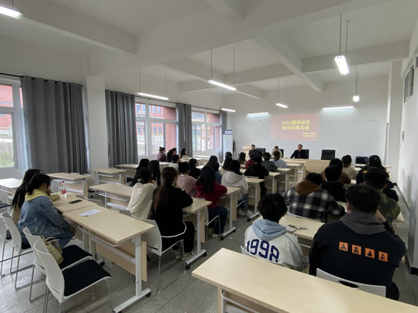徐承英分析了今年就业形势,并作就业指导和动员。她要求同学们要认清就业严峻形势,转变就业观念,扩宽视野、增强信心、抢抓机遇、勇于尝试,积极踊跃参与各类公招考试和各行业岗位竞聘,早日实现全领域、多渠道、宽口径就业。