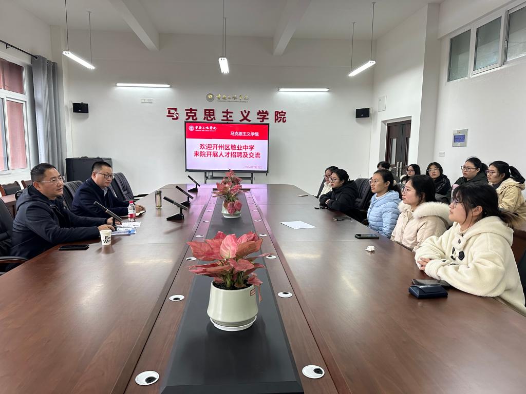 1月5日下午,重庆市开州区私立敬业中学应邀来学院开展专场招聘,学院党总支书记兼副院长秦勤、毕业班辅导员陈伟康以及2024届部分毕业生参加。